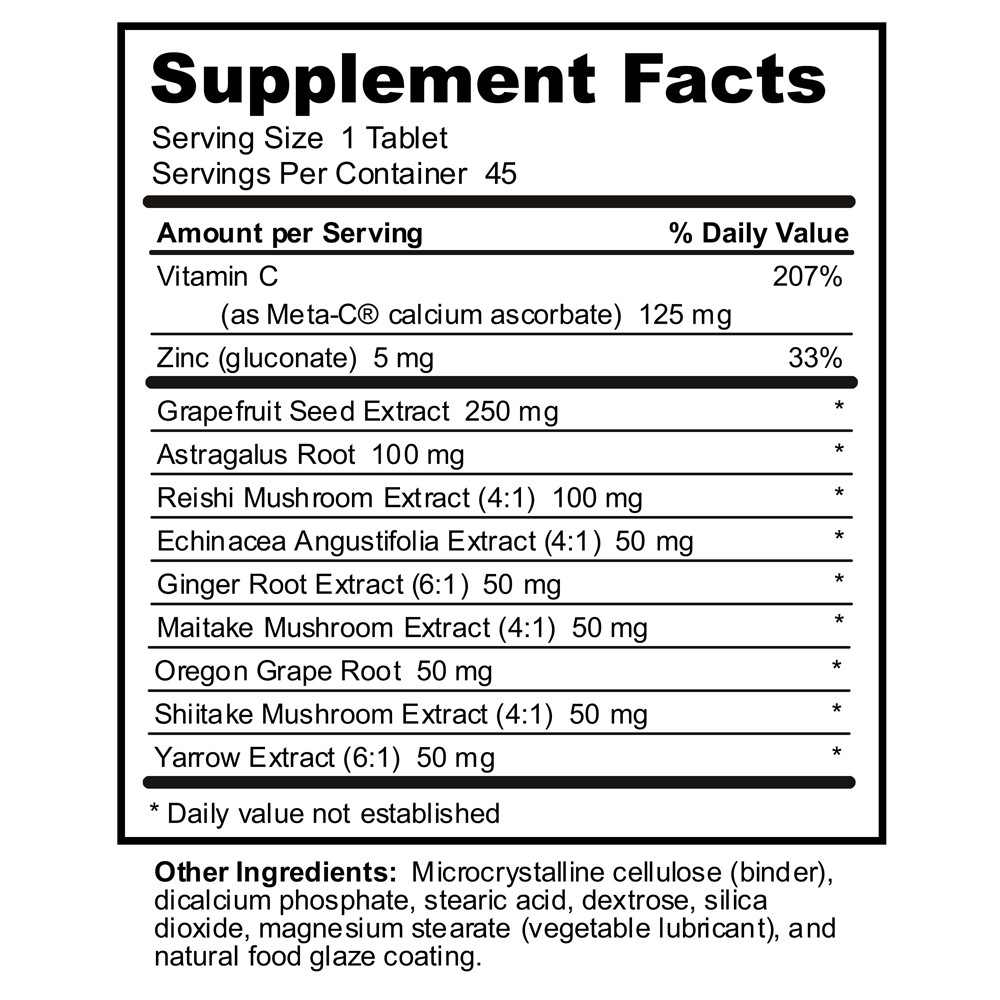 NutriBiotic DefensePlus® Tablets are a unique formulation combining grapefruit seed extract, vitamin C, echinacea extract, astragalus root, ginger root extract, Oregon grape root, yarrow extract, zinc, and the mushroom extracts of reishi, maitake, and shiitake and are used by healthcare professionals worldwide.